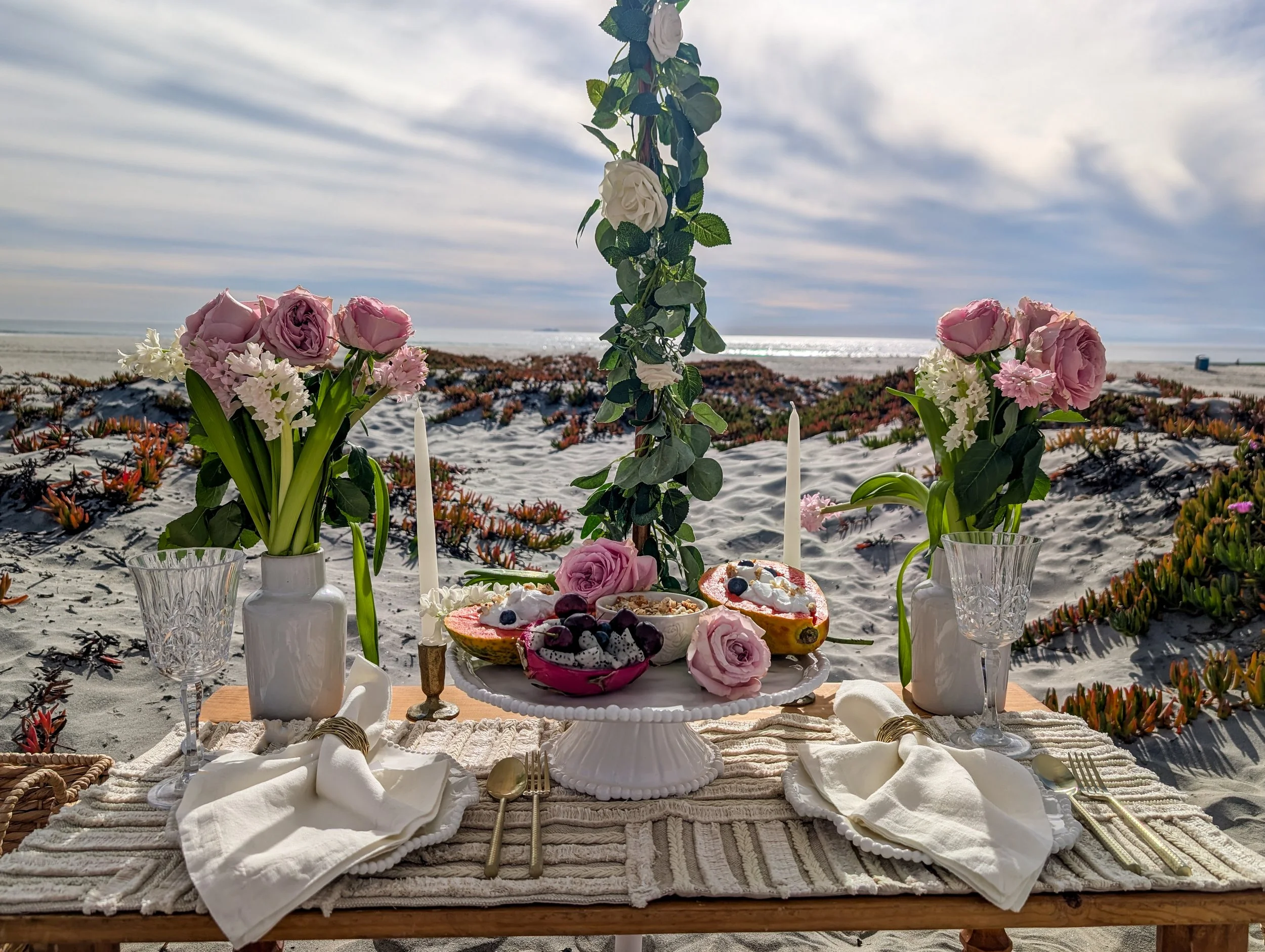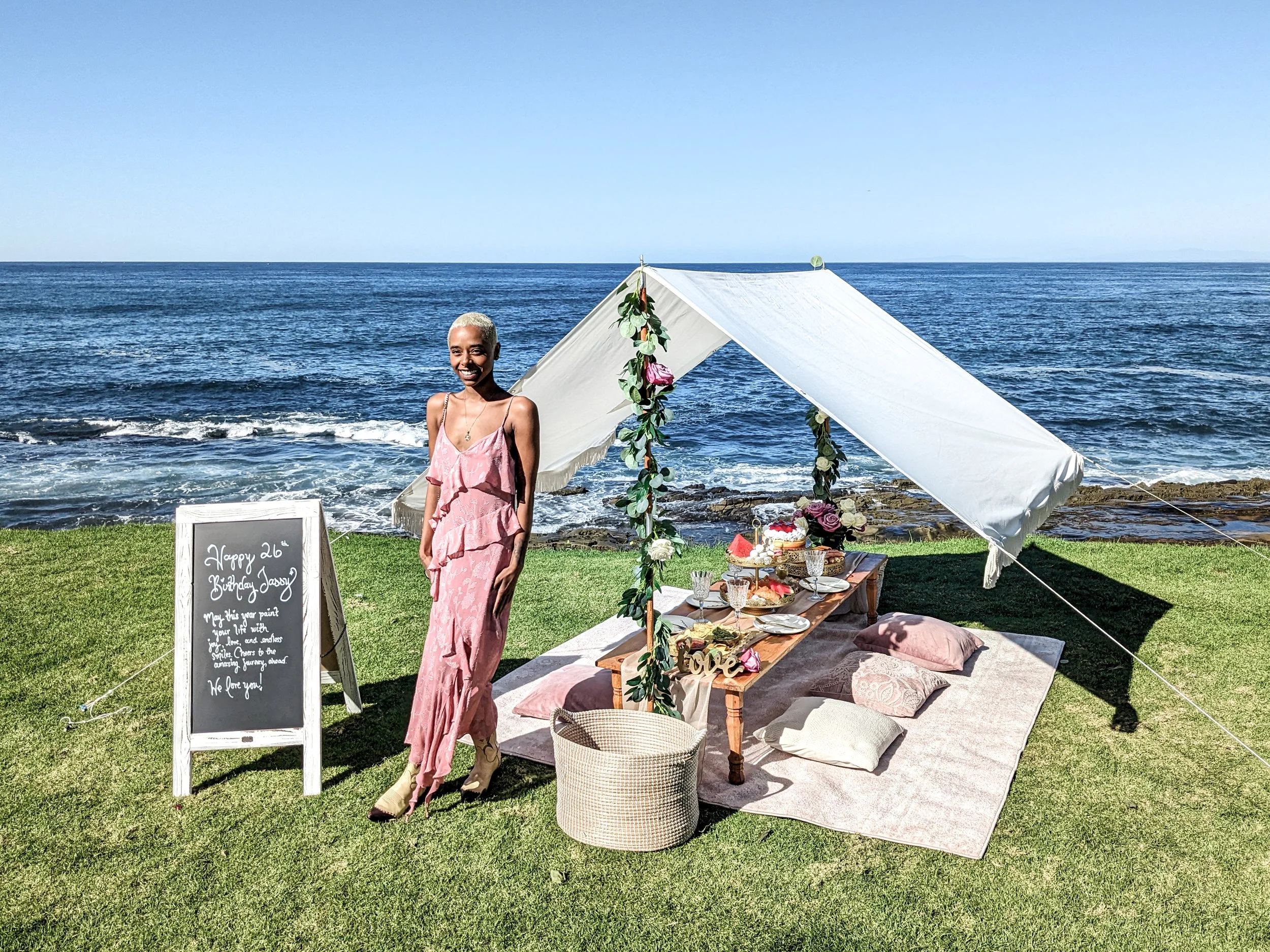 We here at Pure Bliss Luxury Picnics as passionate about creating memorable, inspiring, relaxing picnics to share among friends, family, and partners. Why choose a luxury picnic over other options? Luxury picnics foremost connect you to the incredible scenery of San Diego. We specialize at setting up at ocean-front locations with unbeatable views. Instead of hearing the clamor and chattering of a restaurant, listen to the ocean waves crash and watch the pelicans fly overhead. Instead of being confined to a chair, feel free to lay back and experience the coast in the most comfortable way possible. Beyond the benefits of a quieter and inspiring setting with iconic San Diego views, our luxury picnics are detail-oriented, providing everything needed to have an amazing time. Pure Bliss Picnics is a female-led business, and we pour our hearts into each picnic. We prepare each luxury picnic as we would for our own family. We provide organic, freshly prepared menu items, with attention to dietary restrictions, and readiness to accommodate special requests. Each guest feels incredibly relaxed during their picnic, whether it is a girls date for brunch, a family gathering, or a fun date for couples, San Diego offers enchanting scenery, and our luxury picnics offer views unrivaled by any venue. Our guests love the special details we add for any occasion, whether celebrating an anniversary, hosting a birthday picnic, planning a proposal picnic, or a bachelorette picnic, we love customizing each picnic to your special occasion. Customize your luxury picnic with us, and enjoy a beautiful, meaningful, and unforgettable experience.