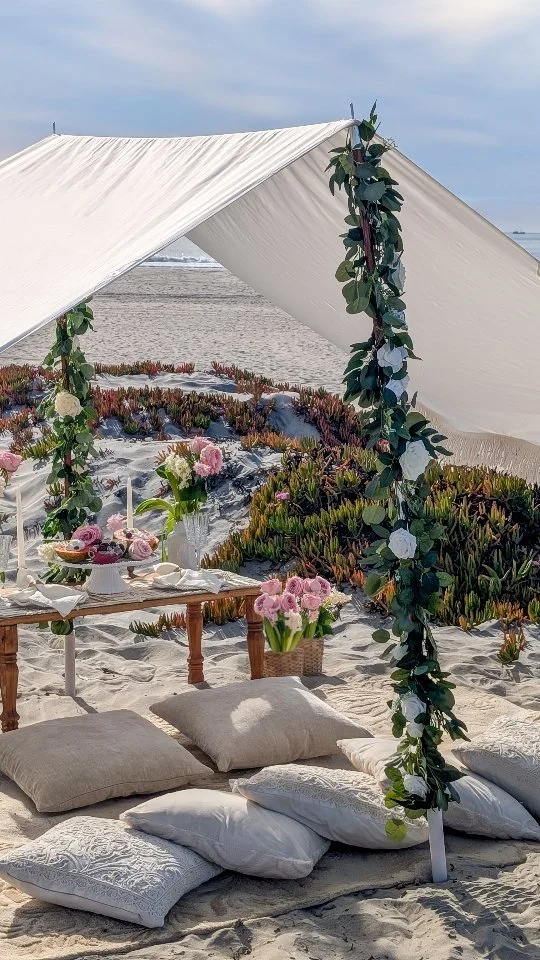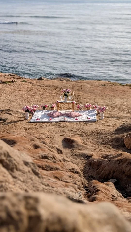We here at Pure Bliss Luxury Picnics as passionate about creating memorable, inspiring, relaxing picnics to share among friends, family, and partners. Why choose a luxury picnic over other options? Luxury picnics foremost connect you to the incredible scenery of San Diego. We specialize at setting up at ocean-front locations with unbeatable views. Instead of hearing the clamor and chattering of a restaurant, listen to the ocean waves crash and watch the pelicans fly overhead. Instead of being confined to a chair, feel free to lay back and experience the coast in the most comfortable way possible. Beyond the benefits of a quieter and inspiring setting with iconic San Diego views, our luxury picnics are detail-oriented, providing everything needed to have an amazing time. Pure Bliss Picnics is a female-led business, and we pour our hearts into each picnic. We prepare each luxury picnic as we would for our own family. We provide organic, freshly prepared menu items, with attention to dietary restrictions, and readiness to accommodate special requests. Each guest feels incredibly relaxed during their picnic, whether it is a girls date for brunch, a family gathering, or a fun date for couples, San Diego offers enchanting scenery, and our luxury picnics offer views unrivaled by any venue. Our guests love the special details we add for any occasion, whether celebrating an anniversary, hosting a birthday picnic, planning a proposal picnic, or a bachelorette picnic, we love customizing each picnic to your special occasion. Customize your luxury picnic with us, and enjoy a beautiful, meaningful, and unforgettable experience.